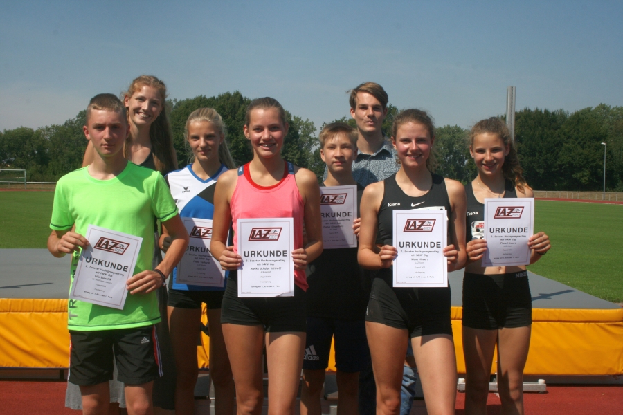W13: 1. Fiona Hinners (LAZ) 1,30 Meter. W14: 1. Annika Schulze Kalthoff (LG Rodendahl) 1,60 Meter, 2. Maleen Klee (LAZ) 1,35 Meter. W15: 1. Kiana Hinners (LAZ) 1,49 Meter, 2. Fiona Terhardt (LAZ Rhede) 1,46 Meter, 3. Jana Klee (LAZ) 1,25 Meter. WU18: 1. Pauline Hillebrand (TSV Bayer 04 Leverkusen) 1,67 Meter, 2. Lara Büttner (LAZ) 1,45 Meter, 3. Sofie Johänning (LAZ) 1,45 Meter. WU20: 1. Franziska Rehkemper (LG Kreis Gütersloh 09) 1,64 Meter, 2. Laura Lynen (SV Westfalia Liesborn) 1,55 Meter, 3. Annika Straub (LAZ) 1,55 Meter. Frauen: 1. Jana Kulessa (TSV Bayer 04 Leverkusen) 1,76 Meter, 2. Kerstin Geisweller (LG Olympia Dortmund) 1,76 Meter. M13: 1. Nils Burschik (SV Westfalia Liesborn) 1,49 Meter, 2. Nils Klee (LAZ) 1,30 Meter. M14: 1. Justus Klingenburg (LAZ) 1,49 Meter. MU18: 1. Tom Ediger (LAZ Wuppertal) 1,99 Meter, 2. Sven Früchtjohann (LG Kreis Gütersloh 09) 1,96 Meter, 3. Ole Willems (Dümptener TV) 1,90 Meter, 4. Oliver Wendt (LAZ) 1,65 Meter, 5. Dennis Gebauer (LAZ) 1,60 Meter. MU20: 1. Florian Hornig (SC Preußen Münster) 2,02 Meter, 2. Felix Keser (SC Selters) 1,84 Meter.