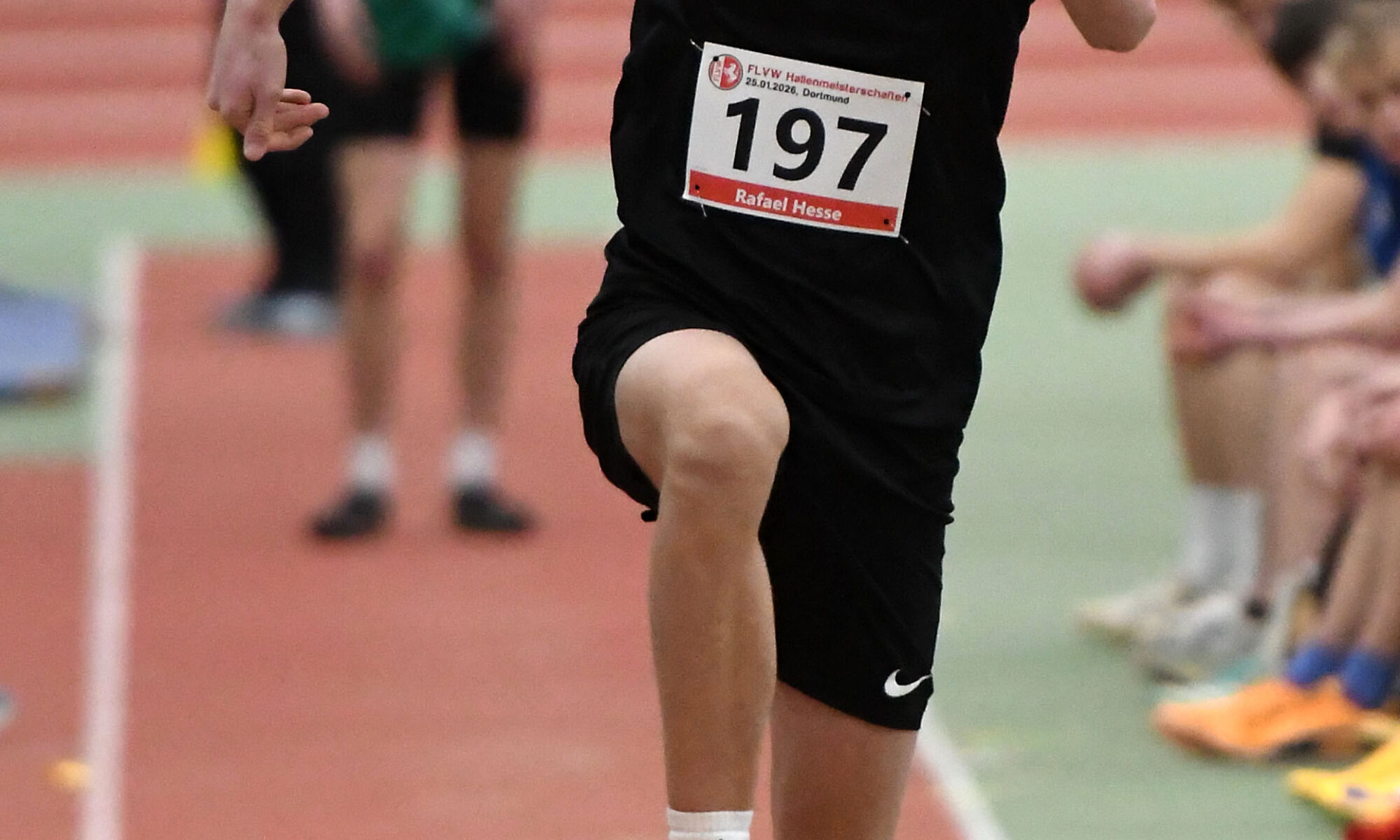 Trainerin Annika Straub hatte die richtige Vorahnung. Wenige Tage vor den Westfälischen Hallenmeisterschaften sah sie mit Blick auf die Meldeliste des Dreisprungwettbewerbs der M15 eine mögliche Titelchance für Rafael Hesse. Aus der Vision wurde schließlich Wirklichkeit. Doch Mehrkampftalent Hesse, der kaum Erfahrung in der Disziplin besitzt, wurde nicht nur Westfalenmeister. Der Dritte der deutschen Meisterschaften von 2025 im Neunkampf der M14 setzte sich auch mit herausragenden 11,65 Metern auf Platz drei der aktuellen deutschen Bestenliste seiner Altersklasse. Mit diesem Spitzenresultat ihres Musterschülers hatte Straub überhaupt nicht gerechnet.