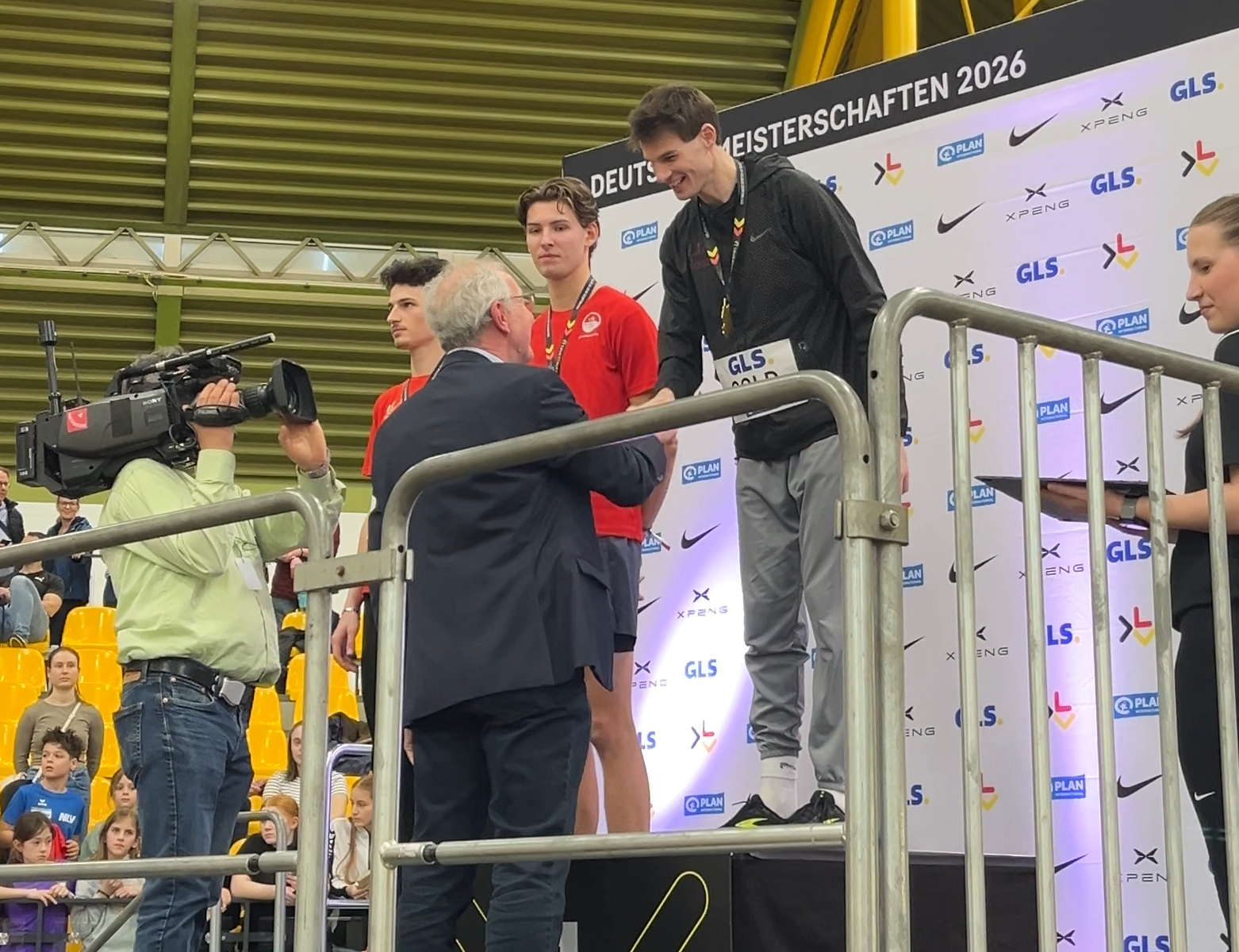 Bei 2,14 Metern verabschiedeten sich mit Marlon Gräfe (LG Region Karlsruhe) und Niklas von Zitzewitz (VfL Eintracht Hannover) auch die beiden letzten noch im Wettbewerb verbliebenen Konkurrenten. Einzig Wendrich war im zweiten Versuch erfolgreich. „Das war der erste Sprung für mich, den ich gut getroffen habe“, erinnert er sich. Das Ende bedeutete das für ihn aber noch nicht, denn nach zwei Fehlversuchen über die von ihm jetzt selbst gewählten 2,19 Meter überflog er diese Höhe im dritten Anlauf ebenfalls. „Es ist mir hierbei gelungen, einfach alles zusammenzubringen. Ich konnte Geschwindigkeit und Energie optimal in den Absprung übertragen, die Kurveninnenlage halten und dann explosiv nach oben auflösen“. An diesem Tag sei dies der beste Sprung gewesen, den er habe schaffen können. Zumindest im Rahmen der Möglichkeiten sei es ein nahezu perfekter Sprung gewesen, erklärt der glückliche Meisterspringer.