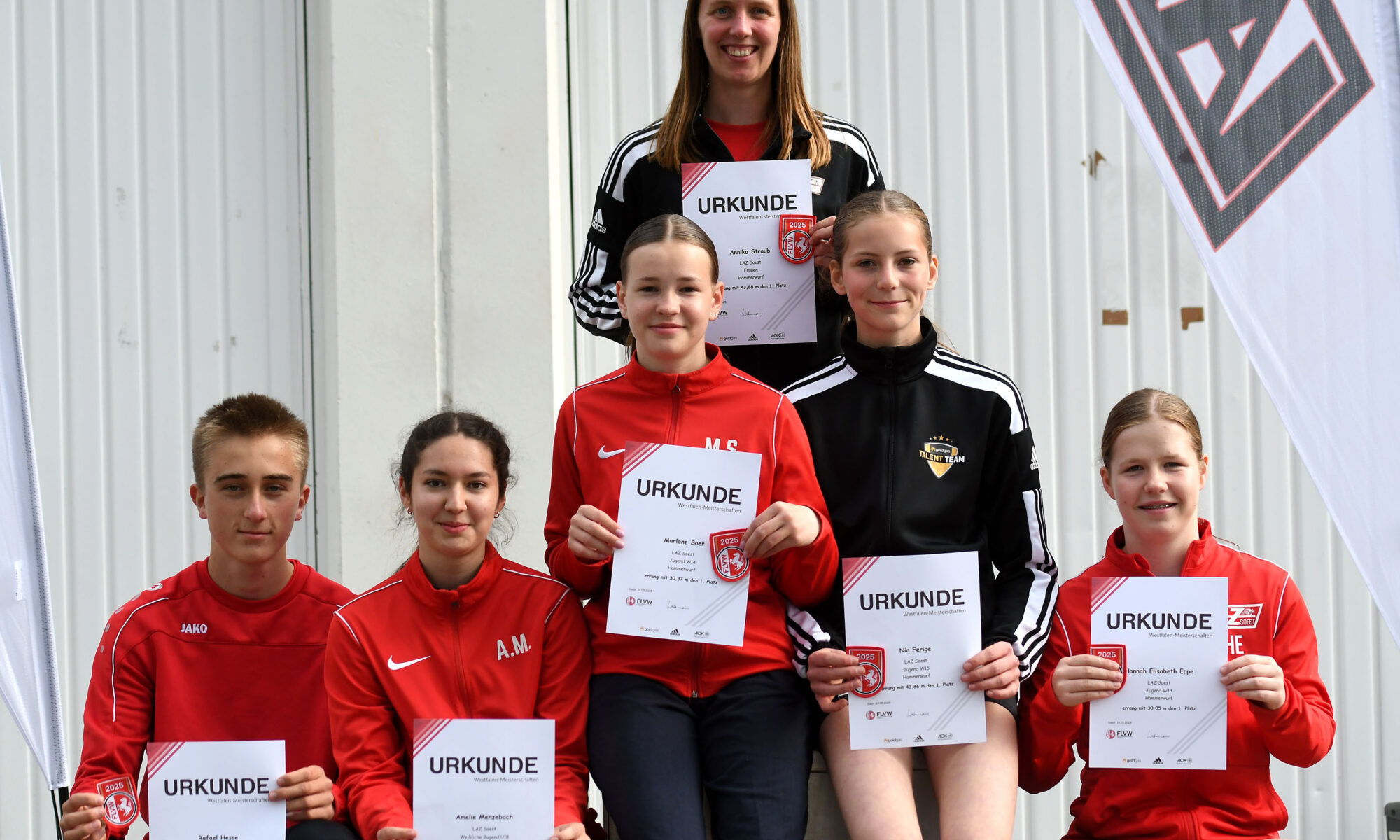Unter diesen optimalen Trainingsbedingungen entwickelten sich die Leistungen enorm und Soest wurde zu einem Zentrum des Hammerwurfs in Westfalen. Mit den Werfern des SuS Olfen lieferten sich die LAZ-Aktiven fortan spannende Auseinandersetzung um die Vormachtstellung im Verbandsgebiet; und gingen nicht selten als Sieger aus dem Wurfring. Die Bilanz der Bördestädter kann sich sehen lassen. Bisher überboten mit Annika Straub, Nia Ferige, Margareta Böttiger und Sandra Straub sogar vier Athletinnen die Qualifikationsnorm für die deutschen Meisterschaften. Sandra Straub (W45) 2022 als Bronzemedaillengewinnerin, Margareta Böttiger (W50) in den Jahren 2023 und 2024 als jeweils Sechstplatzierte und Nia Ferige (W15) mit Platz sechs 2025 schafften in ihren Altersklassen den Sprung in die nationale Spitzenklasse. Insgesamt weist die Statistik 14 DM-Normen aus. Überragend auch die Ausbeute bei den Westfalen- und NRW-Titelkämpfen, wo bisher stolze 31Goldmedaillen gewonnen wurden.